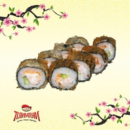 Рис, нори, сыр, угорь, темпурный кляр, соус «Унаги», кунжут.