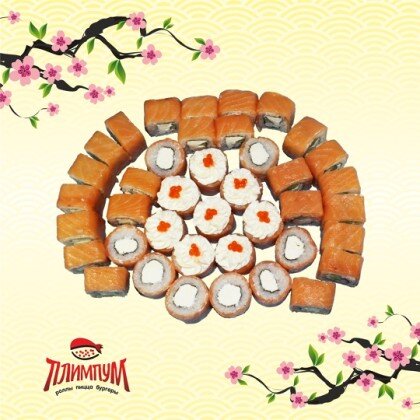 Ролл «Темпура с креветкой, ролл «Аризона», ролл «Лосось темпура», соевый соус (1 шт.), васаби (1 шт.), имбирь (1 шт.)